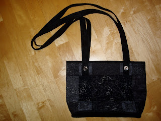 Tidligere hadde jeg en veske lik denne som ble helt utslitt. Fasongen passet meg utmerket og jeg liker lange remer - derfor måtte jeg bare sy meg en nesten likedan :-)