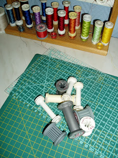 JA.............helt riktig, tomme trådsneller. Nå har jeg samlet tomme trådsneller siden 1 juli - kan bli spennende og se hvor mye det kan bli i løpet av et halvt år - eller 1 år. Litt gal! Tja, men jeg samler jo på så mye rart som kan komme til nytte i forbindelse med et quilte arbeid en gang.......... så hvorfor ikke :-)