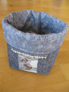 Her er bilde av en pute som Tyger og Ting hadde på sin flotte stand. Jeg kjøpte de nydelige stoffene som hørte til denne puten.