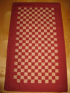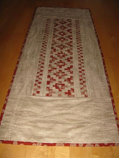 Her er noen løpere som jeg har gitt bort i julegave. Mønsteret til den første løperen sto i Quiltemagasinet 5/09, en løper på en kveld. Den er frihåndsquiltet på maskin.