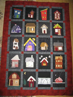 Dette er fellesteppet for i år hvor vi har sydd et hus hver ut i fra egne ønsker. Jeg synes teppet vart kjempeflott. En i husflidslaget har tatt på seg å håndquilte det :-)
