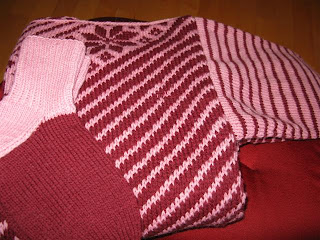 Siri og hun er utrolig flink til å strikke. Hun lurte på hva jeg ønsket meg i 50 års gave - og mitt ønske var da og få ferdig genseren som har ligget "noen" år på syrommet. Stakkars Siri fikk med seg genseren som den var og noen små garnnøster som var igjen som dere ser av bildet.