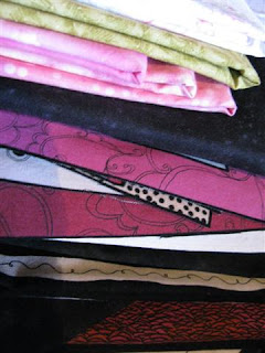 Savnet den lille lampen jeg fikk for ikke så lenge siden, den må nok bli med på neste tur. Man blir avhengig av godt lys merker jeg.... Ja, planene ja..... stoffene ligger i forskjellige bunker. Spennende og se hvilke av stoffene jeg velger fra denne bunken til slutt. Jeg er jo IKKE rosa da..... men det passer godt inn i prosjektet :-)