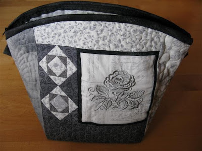 Da ble denne toalettmappen ferdig. Det har blitt mye frihåndsquilting her og jeg har kost meg masse. Det tar jo selvfølgelig en del tid, men jeg liker det nå slik. Takker Leah Day og SewCalGal for at frihåndsquiltingen er blitt så gøy.