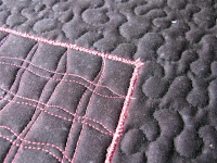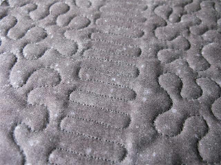 Her ser dere tydelig de stappede kanalene. De brede var greie å stappe mens de smale var nesten umulig. Og til opplysning så var det nesten helt umulig og få sydd i bånn og så slitsomt for hendene. Det var så tykt og stivt å sy i så jeg trælet mye med det. Sprettet opp igjen noe og sydde til sist for hånd for å bli fornøyd.