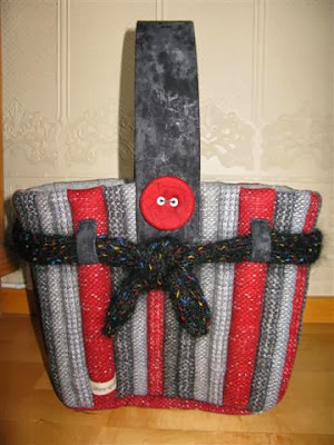 strikke snora til kurven - startet for to år siden med det........ Og så ble det liggende. Ser jo nesten ut som stoffet er strikket så da var det jo greit å kombinere strikking og sying. For et år siden startet jeg med å