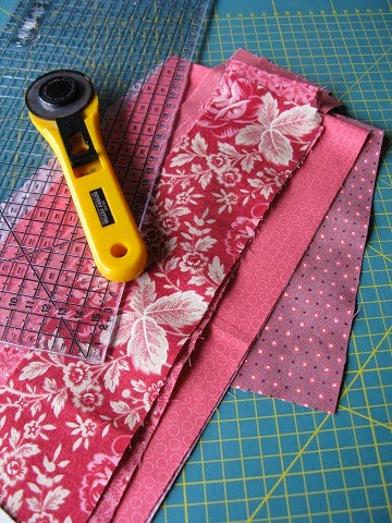 Kattepotene ble forminsket ut fra originalen så de skulle passe til stripene i teppet. Stripene er skåret på 7,5 cm.