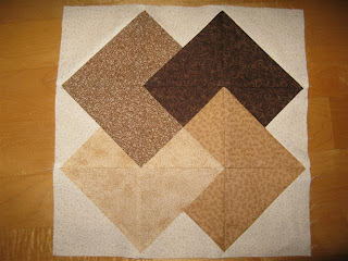 Her er bilde av blokkene mine til fellesteppe vi skal lage i husflidslaget. Teppe blir en av gevinstene på julemessa og jeg gleder meg til å se flere av lappene og være med å leke dette sammen.