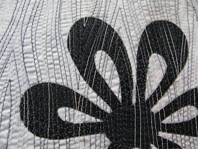 Her har jeg applikert blomstene med "gittersøm". Har bare sydd rettsøm opp og ned med litt buer. Artig med en litt annen applikasjonsmetode.