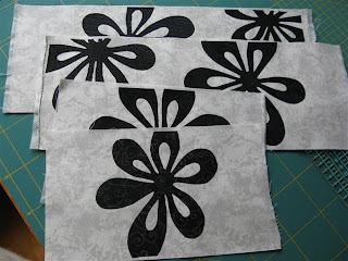 Onsdag på syinga startet jeg med å tegne og klippe ut disse blomstene til en løper av AnnAKa, "Etterjulsvinter". Hadde planer om å sy løperen men det er skjelden jeg følger et mønster egentlig.....