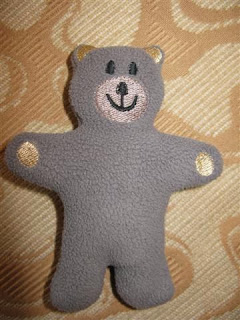 Pyntet med knapper utenpå armene. Mye jobb på disse små figurene men de ble jo fine da.