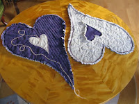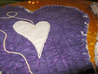 Novemer allerede og snart adventstid. Har laget to hjerter i lilla med rufseteknikk. Disse hjertene er morsome å lage. På den ene siden er det lin og på baksiden er det lilla - eller omvendt. Disse er vendbare så da er det bare og velge. Veldig praktisk - da ble det to løpere i en.