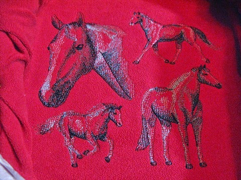 Koselig og sette sitt eget preg på klær. I dag har jeg sammen med min datter dekorert genseren hennes. Og motivet er hester selvfølgelig - passer jo så bra til ei hestejente. Kjekt at hun lærer litt brodering + at hun får seg en fin genser til stallen. Her ser dere hvordan vi har nålet genseren når den står i broderi ramma.