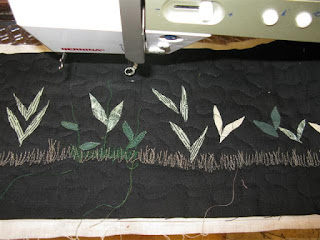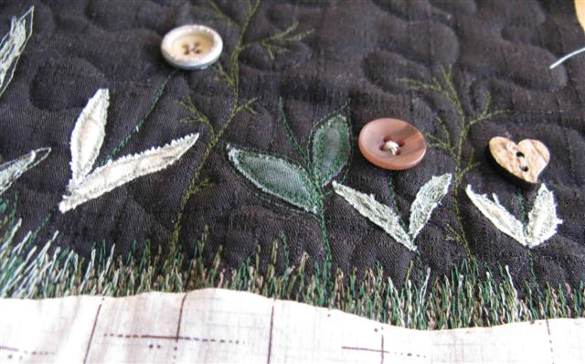 Ønsket å bruke en litt rufsete søm her. Siden symaskina ikke hadde den sømmen jeg ønsket, utfordret jeg meg selv til å lage en ny søm. Fornøyd med resultatet. Kanskje ikke den letteste sømmen å bruke når det jeg må snu arbeidet så mye.....