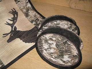 Her har jeg laget en brikke og to mug rugs. Var med på en sew along hos Sweet Pea tidligere i år og her er resultatet.