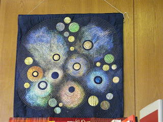 På denne quilten har Helena Geitel brukt teknikken med å farge med solteknikken. Lekkert synes nå jeg, så jeg måtte kjøpe med meg utstyr så jeg får prøvd dette.