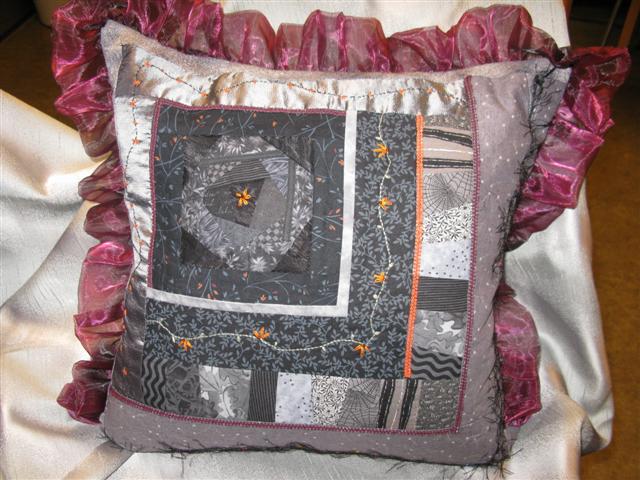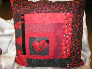 Siden jeg ikke ble helt fornøyd med prøveprosjektet over her så satte jeg i gang og brodere en ny blokk. Denne trapunto blokken er noe forminsket fra den originale blokken. Her har jeg brukt flerfarget quiltetråd å brodere med - sømmen kom godt fram da.